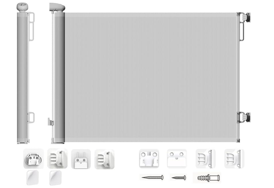 DUOGIO Baby Gate рулонный детский забор ширина 180 см (Совместимость с шириной двери 0,8м/1,2м/1,5м/1,7м) Детские калитки на лестнице Калитка для домашних животных Рулонные калитки для лестниц Высота 86 см Поставляется с винтами и двухсторонним скотчем Может быть установлен без сверления Сетчатая ткань Дверное ограждение, Выдвижное ограждение для домашних животных, Безбарьерное, Калитка для предотвращения побега, Функция блокировки безопасности, Может быть установлен на плитку, деревянные, стеклянные и металлические стены Подходит для детей/домашних животных/кошек/собак Серый