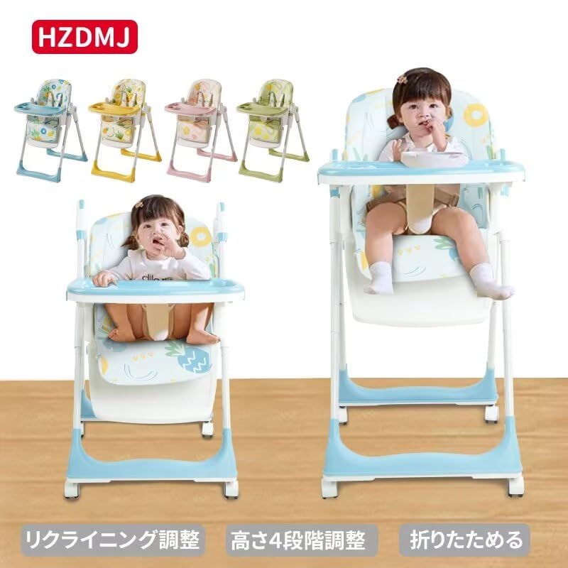 Детский стульчик HZDMJ, высокий стульчик, низкий стульчик, двухпозиционный, складной, компактный, с регулируемой высотой, 5-точечный ремень безопасности, предотвращение вставания с