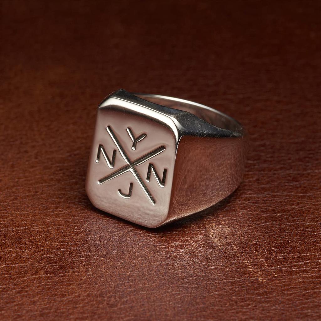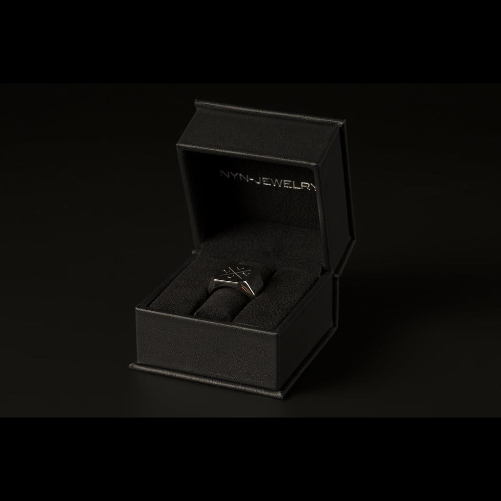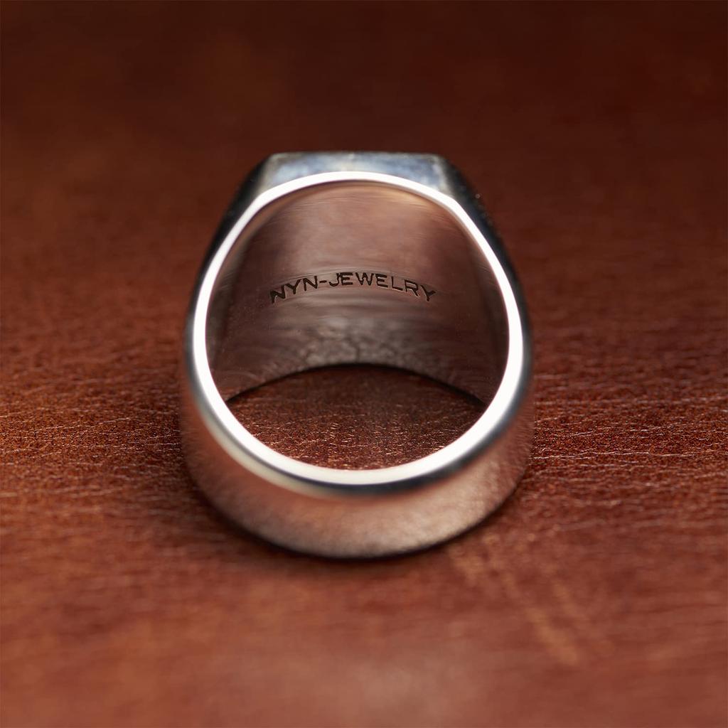 NYNJ SIGNET СЕРЕБРЯНОЕ КОЛЬЦО 925 пробы Серебряное кольцо-печатка с подставкой и логотипом бренда с гравировкой [NYN-JEWELRY] Мужское (нет. 15)