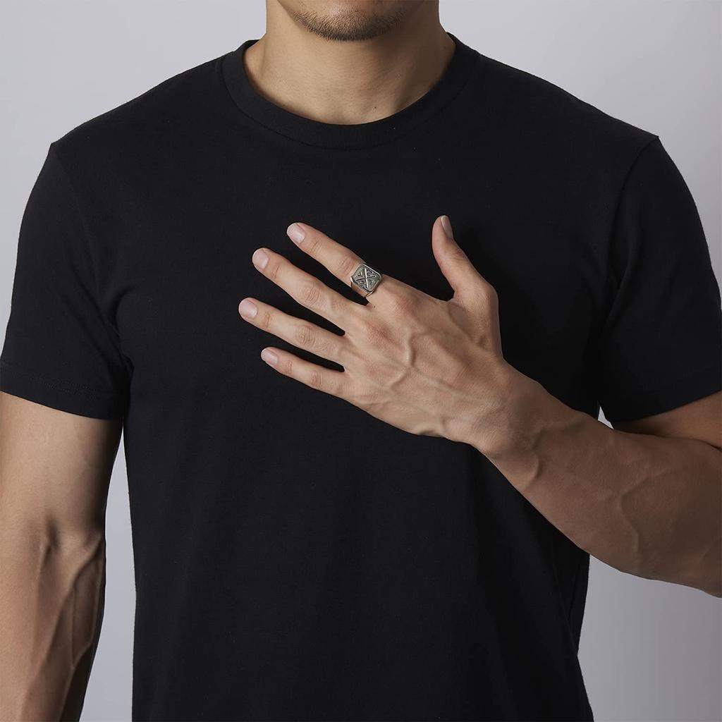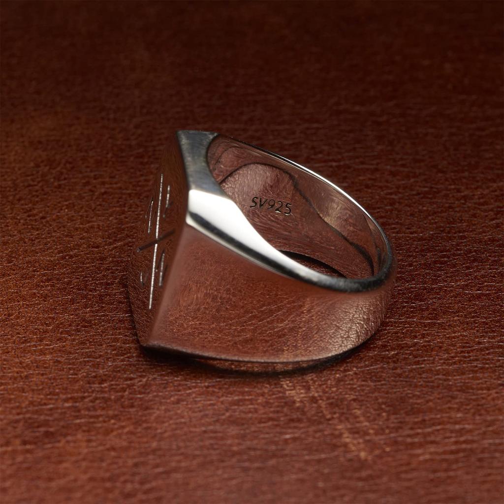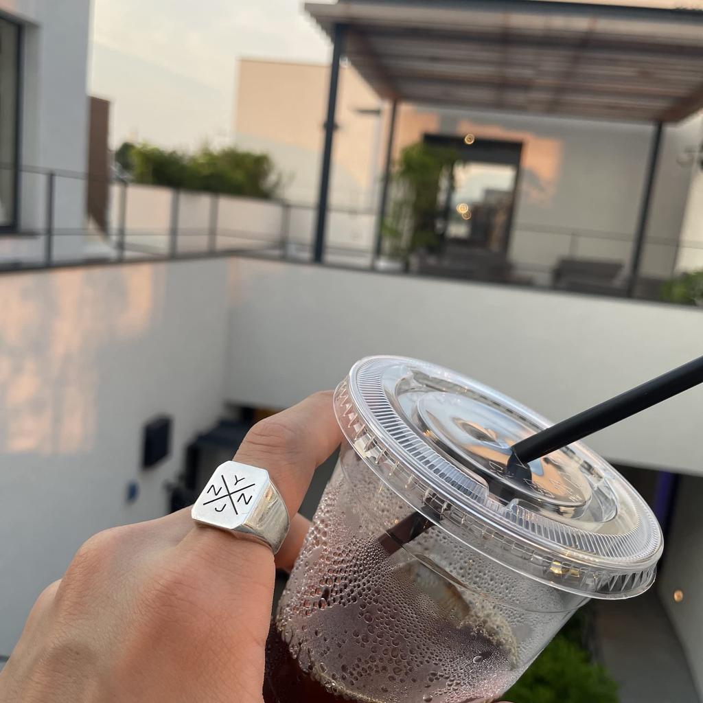 NYNJ SIGNET СЕРЕБРЯНОЕ КОЛЬЦО 925 пробы Серебряное кольцо-печатка с подставкой и логотипом бренда с гравировкой [NYN-JEWELRY] Мужское (нет. 15)