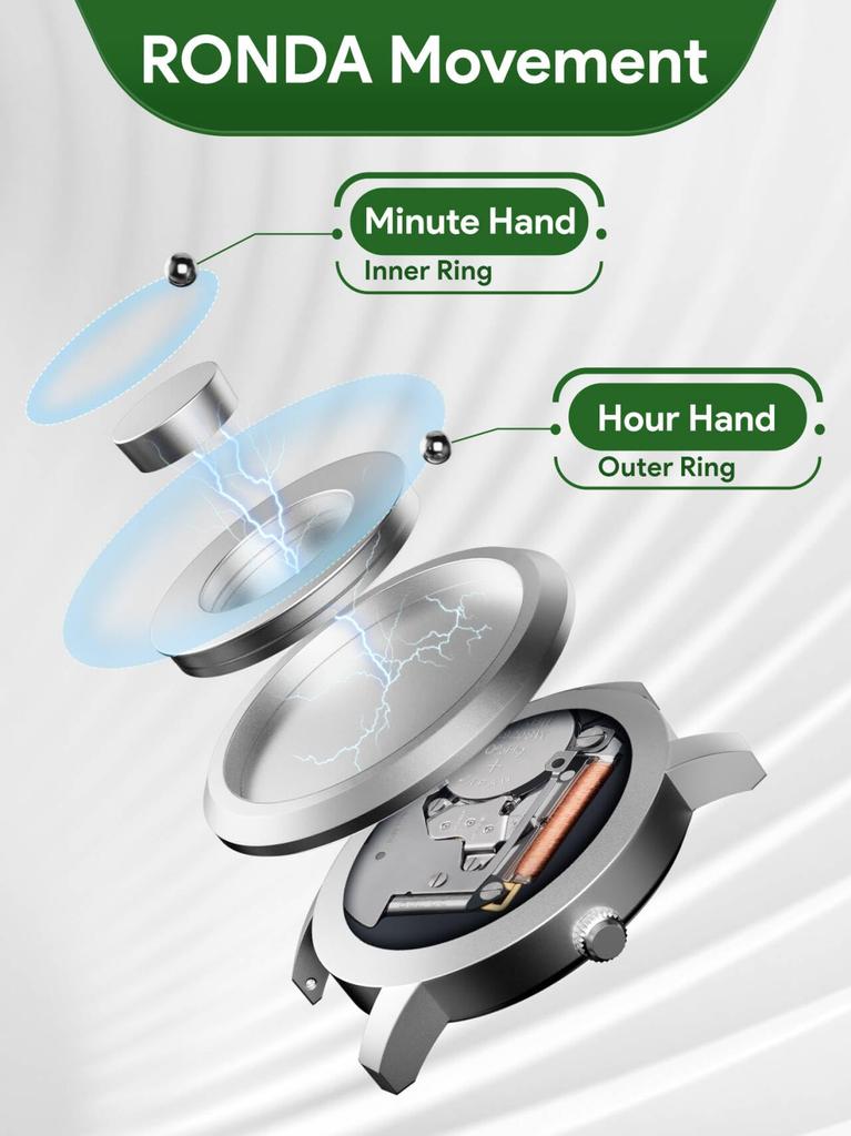 СТАБИЛЬНЫЙ КВАРЦЕВЫЙ МЕХАНИЗМ: Мужские магнитные часы EUTOUR изготовлены на основе кварцевого механизма высшего качества, обеспечивают точную синхронизацию, надежную и стабильную работу, работают от батареи SR920SW с длительным сроком службы, который может достигать 45 месяцев.