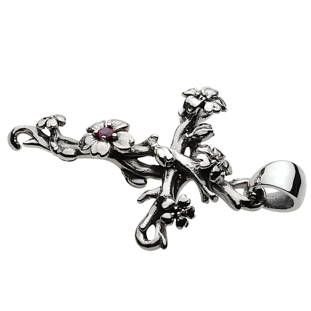Подвеска-крест «Цветущая вишня» с рубином fp0366 [Figmart] [Серебряный аксессуар]