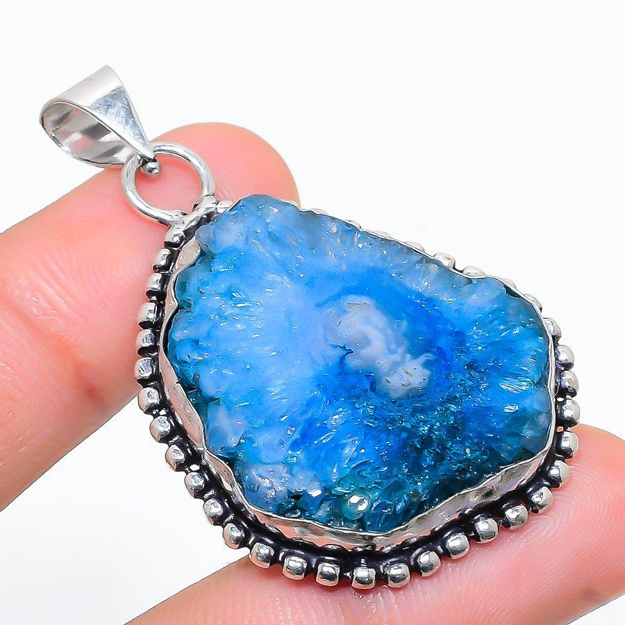 Голубой солнечный кварц ручной работы, ювелирная подвеска из стерлингового серебра 925 пробы, 2,01"