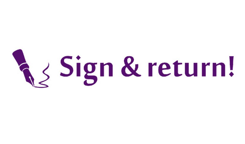 Печать учителя Printtoo Подпишите и верните! Самоклеящийся резиновый штамп, командный/вспомогательный для школьных и офисных принадлежностей, 42x9 мм