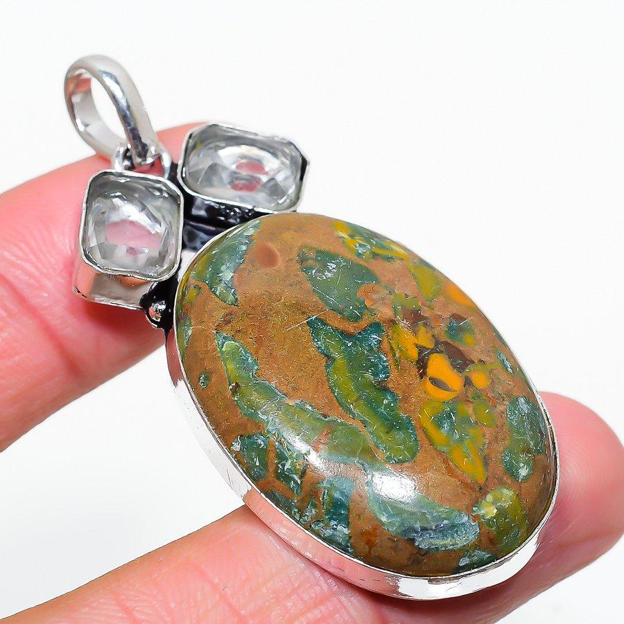 Подвеска из бамбуковой яшмы и топаза, ручная работа, серебро 925 пробы, 2,32 дюйма