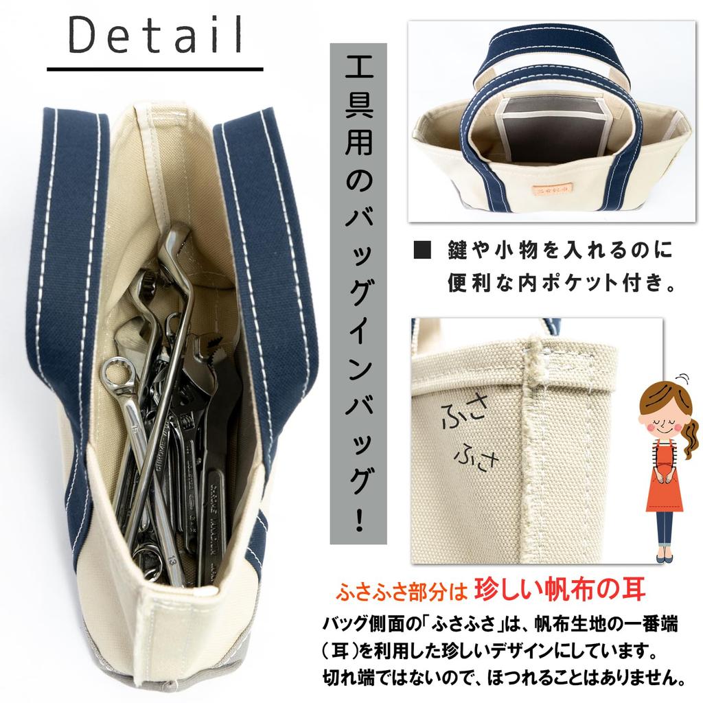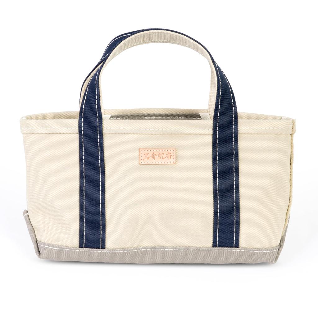 Базовая сумка-тоут теперь доступна в мини-размере! Разработано с учетом использования на рабочем месте. Мини-сумка для хранения инструментов, измерительных приборов, письменных принадлежностей и т. д.. используется в полевых условиях. Используя его вместе с высокой сумкой-тоут нашего бренда [Iwafune Hanpu], его также можно использовать как сумку в сумке для хранения мелких предметов отдельно от папки, в которой хранятся материалы.. Так как он изготовлен из плотного эластичного холста, он может стоять сам по себе, без необходимости что-либо в него класть.