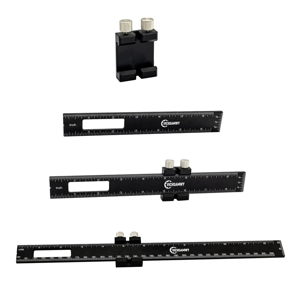 Карманная линейка VICHSAMWY для точной разметки по дереву, 6 дюймов, металлическая линейка с выдвижным упором, квадратная регулируемая линейка для разметки, набор из 3 шт.