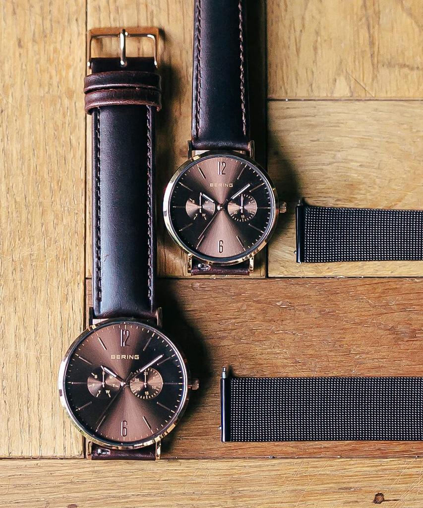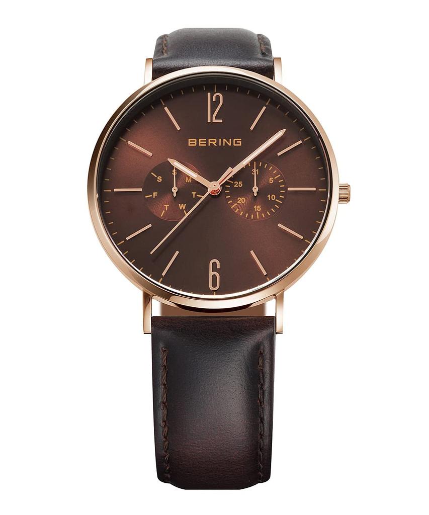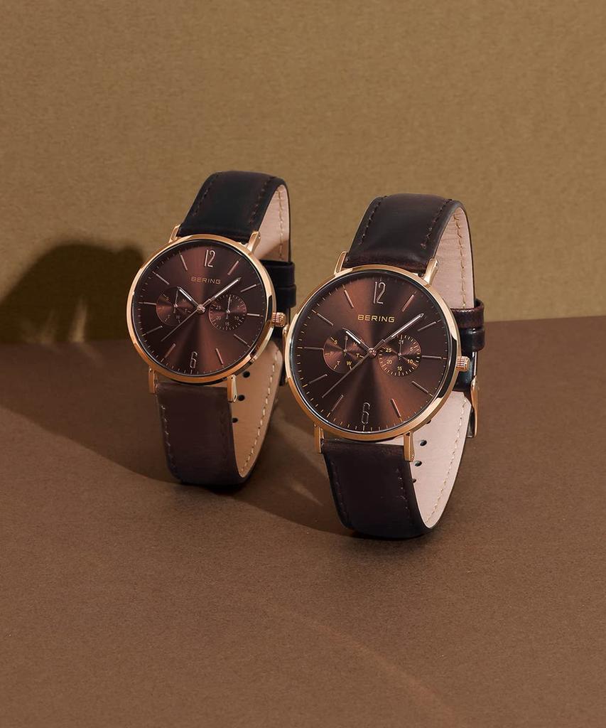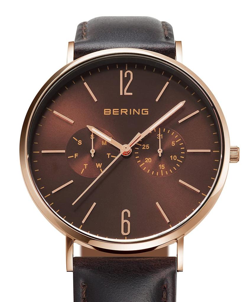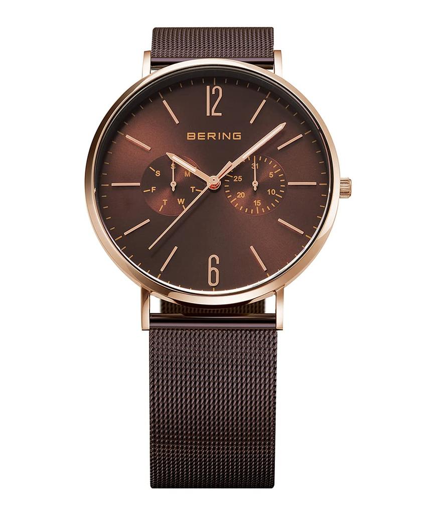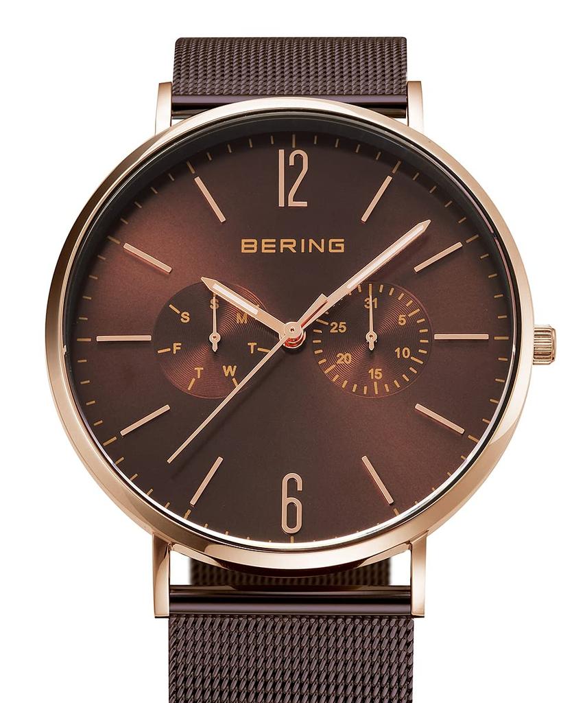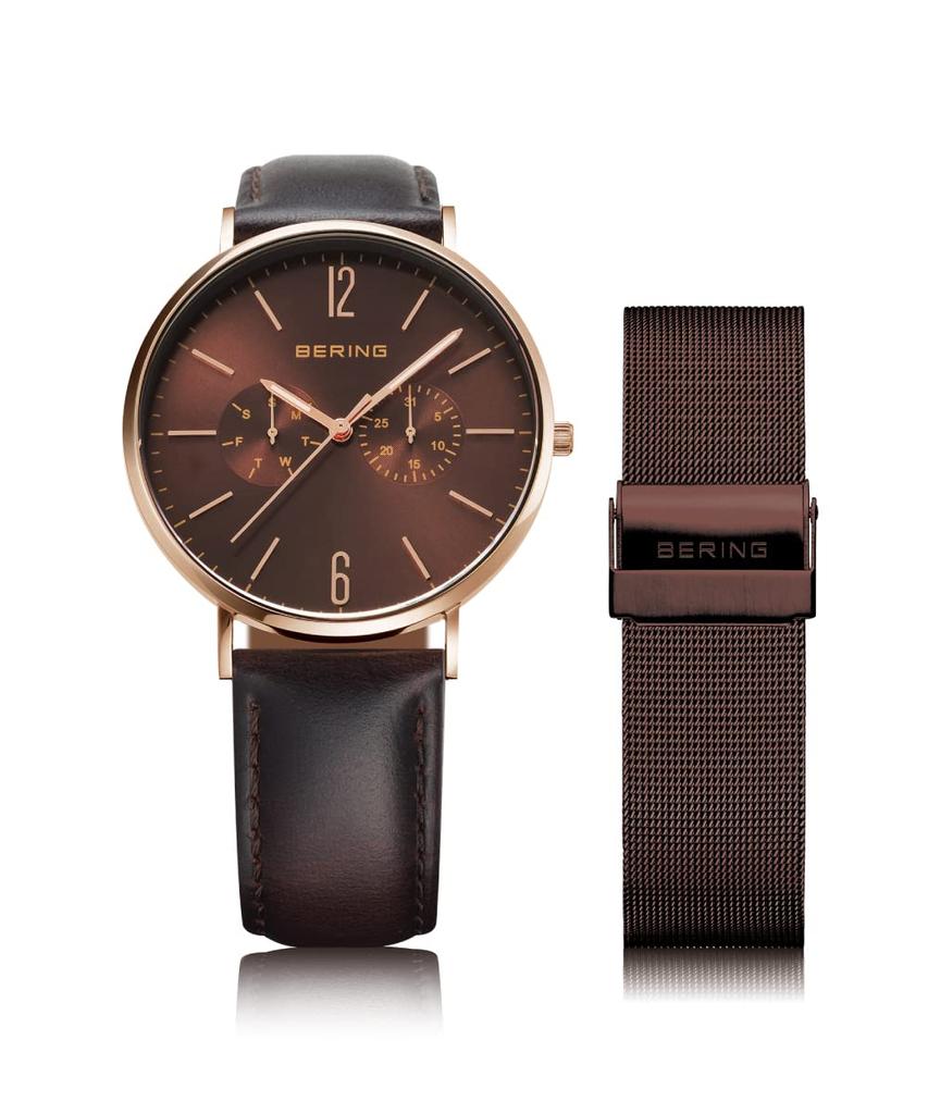 BERING Japan Limited Коричневый ремень из телячьей кожи с коричневой сеткой из нержавеющей стали включает в себя 2 смены сапфирового стекла из розового золота Подлинный импортный продукт 3 года