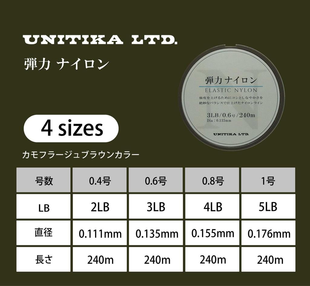 UNITIKA ELASTIC NYLON 240m Camo Brown 4LB (No. 0.8)