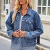 Женская мода Свободная джинсовая короткая куртка Куртка Топ с длинными рукавами Женская
