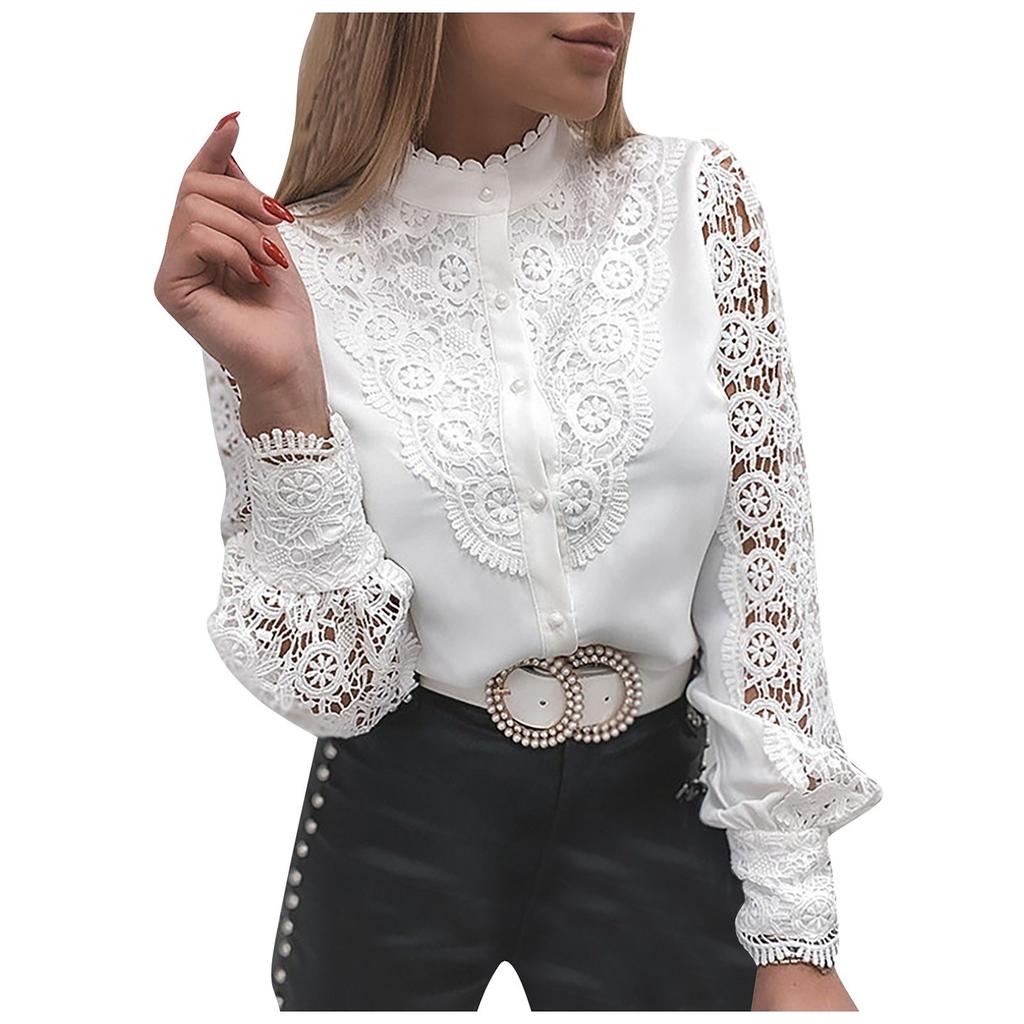 Женская модная кружевная однотонная рубашка с длинными рукавами и пуговицами для женщин