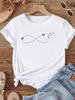 Женская футболка с кружевным бантом и 3D-принтом, короткий рукав, круглый вырез, повседневный топ для лета и весны, женская одежда