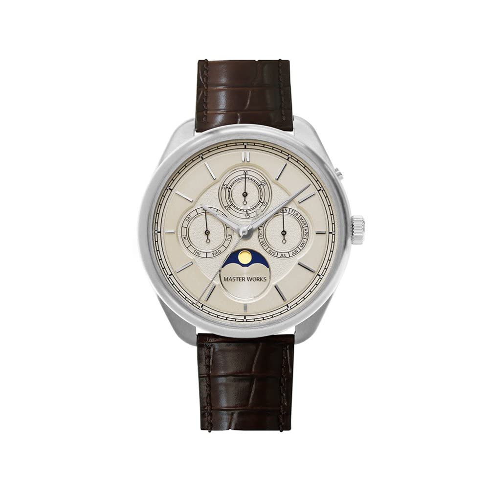 Часы Masterworks Quattro 004, часы, сделанные в Японии, кварцевые, 40 мм, кожаный ремешок, часы с фазами Луны, коричневые [MASTER WORKS] MW21SI-ACDBO8, мужские, мужские