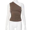 YYFS Женская мода повседневная летняя весна однотонный принт без рукавов косой воротник блузки и рубашки