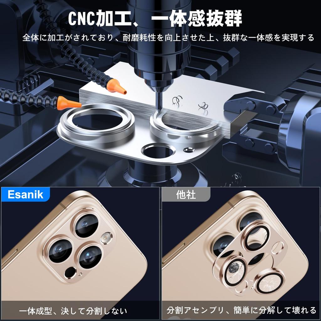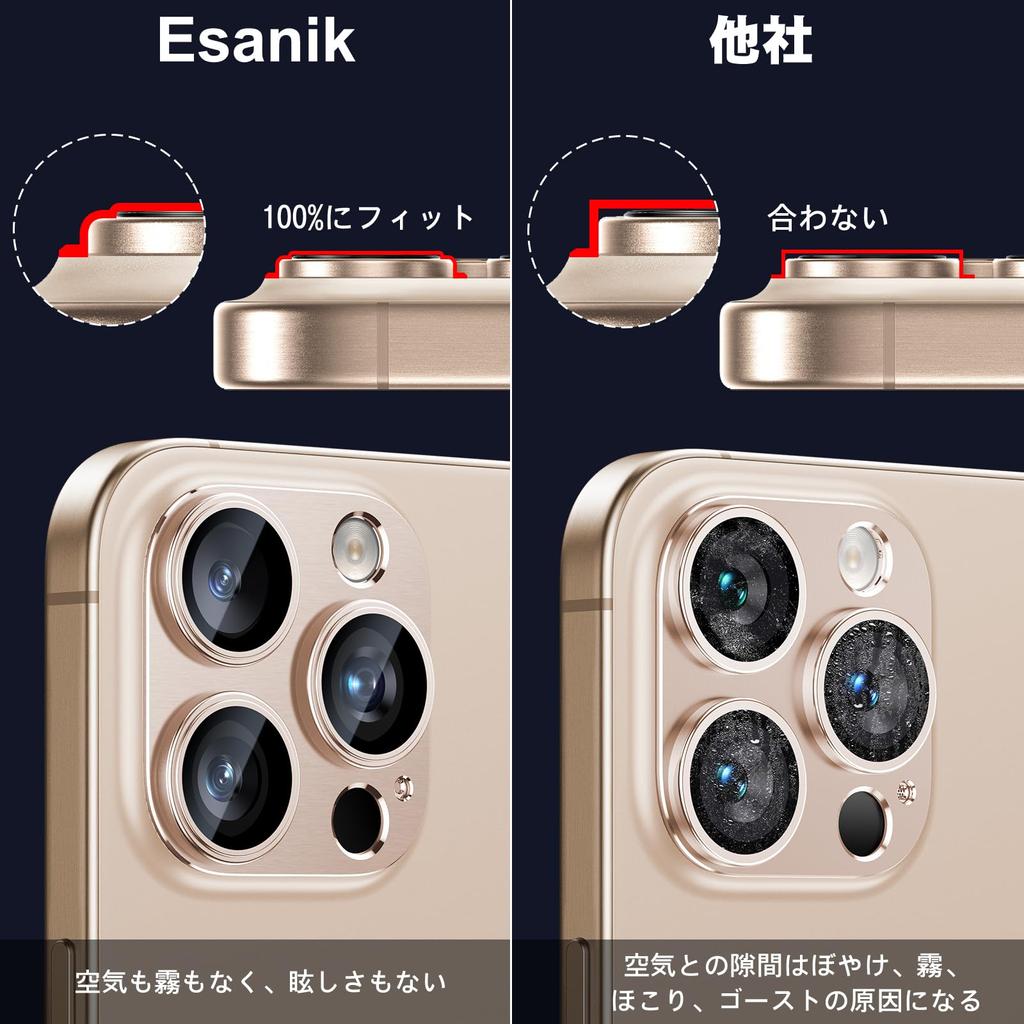 Esanik Набор из 2 пленок для камеры iPhone 16 Pro/iPhone 16 Pro max, алюминиевый сплав, защита камеры, крышка объектива, защита объектива, закаленное стекло, ударопрочное, устойчивое к царапинам, 3 защиты объектива, защита от передержки, защитная пленка для объектива, пустынный титан
