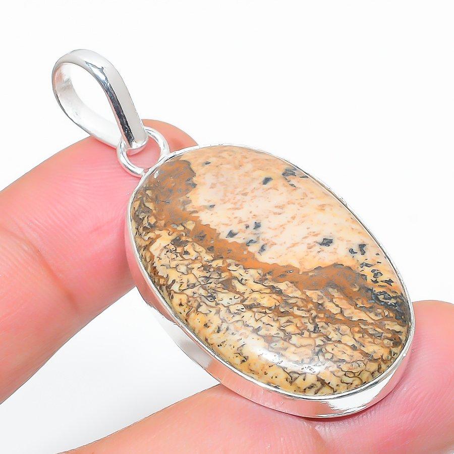 Картина Яшма ручной работы ювелирное украшение кулон из стерлингового серебра 925 пробы 1.97" o0E54