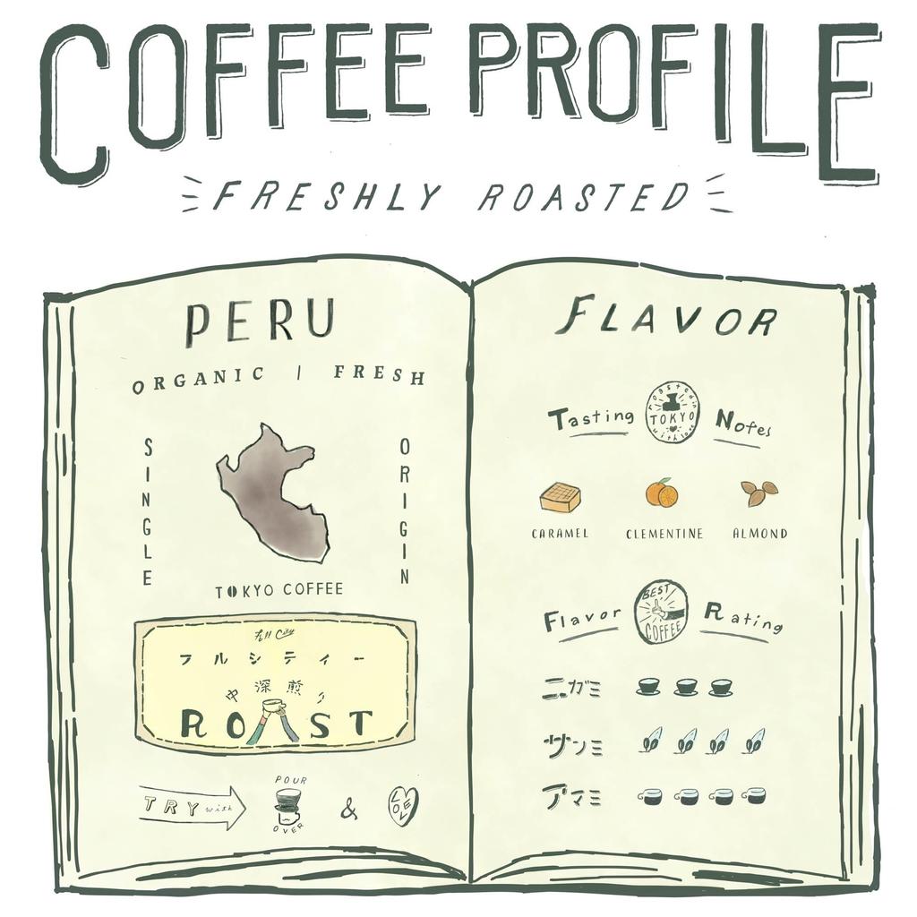 джин Peru слегка кисловатый, но в целом имеет сильную карамельную сладость с ореховым оттенком. Среднее тело. Уникальное насыщенное послевкусие. Вкус: карамель, миндаль, клементин. Перуанский сорт одного происхождения отличается карамельной сладостью, легкой кислинкой и ореховыми нотками.. Попробуйте один раз.. Горечь: ★★★Кислотность: ★★★★Сладость: ★★★★Уровень прожарки: Органический кофе Full City Organic считается одним из продуктов, который в процессе выращивания подвергается наибольшему загрязнению химикатами.. Поэтому органический кофе в зернах — лучший вариант не только по вкусовым качествам, но и по влиянию на организм и окружающую среду.. В TOKYO COFFEE мы с гордостью поставляем нашим клиентам 100% сертифицированный органический кофе в зернах JAS.. Свежесть. Великолепный вкус, аромат и питательная ценность кофе зависят от того, насколько он свежий.. Как и в случае с другими свежими продуктами, вкус меняется только со временем.
