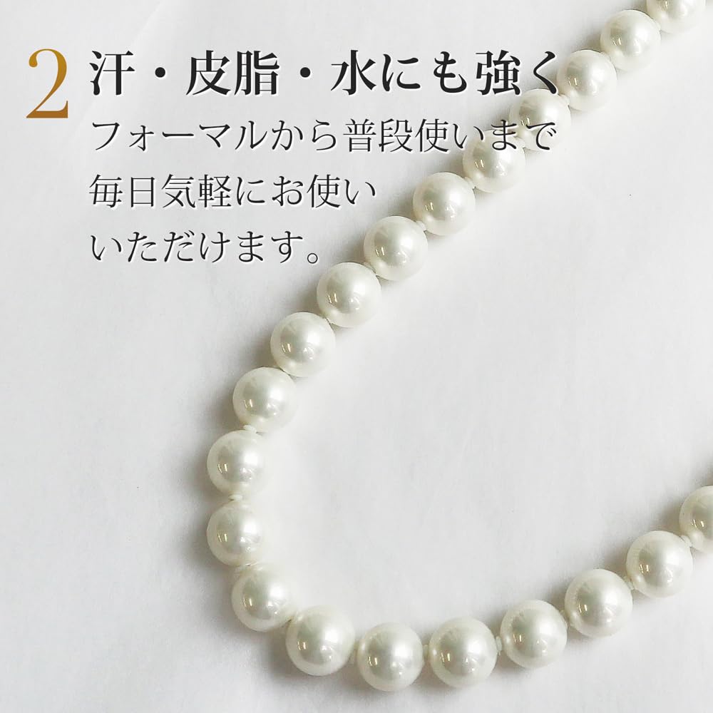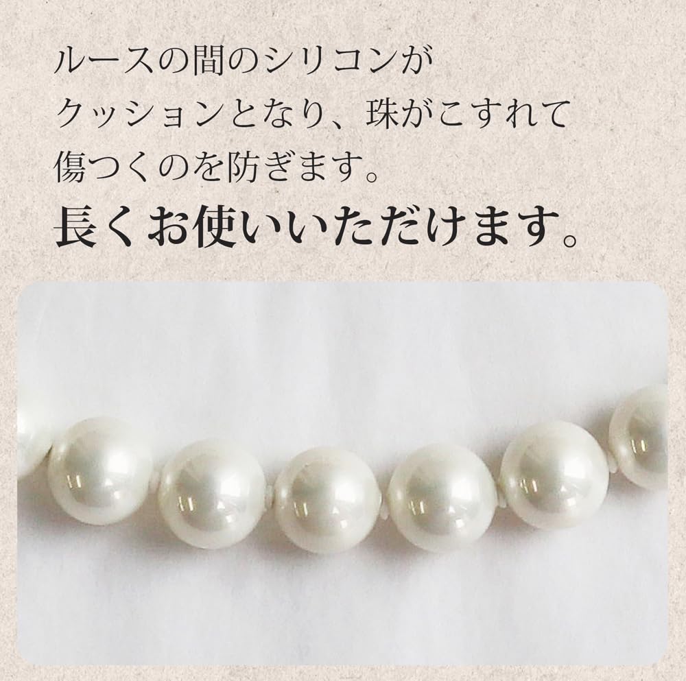В этом ожерелье из белого жемчуга белый силикон аккуратно вставлен по одному элементу и соединен, как в ювелирных изделиях высшего качества, что обеспечивает гибкую отделку! Он настолько тонкий, что его невозможно отличить от настоящего белого жемчуга.