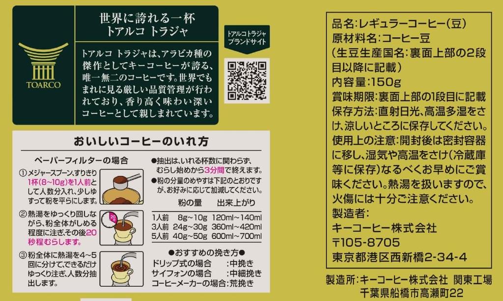 Key Coffee Toraja Blend Beans 150g x 2 bags (LP)