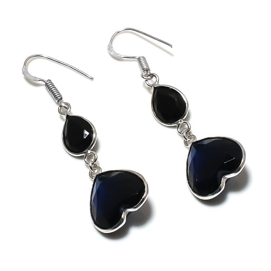 Blue Topaz, Spinel Handmade 925 Sterling Silver Jewelry Earring 2.17" w6H43