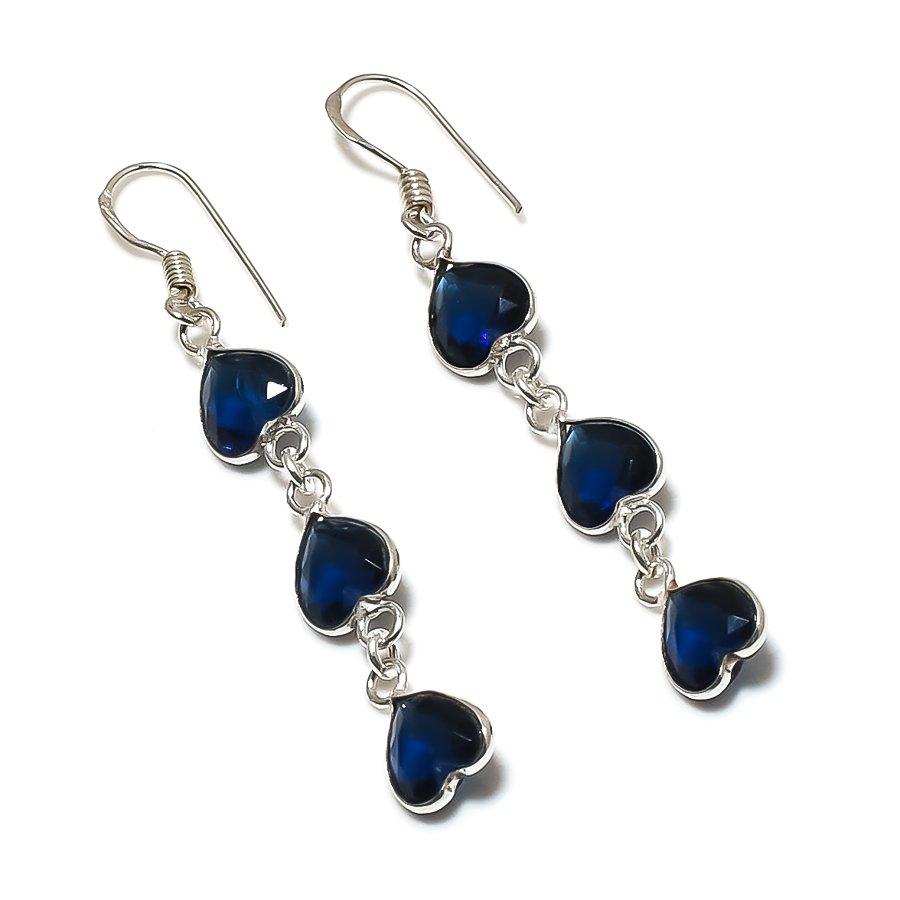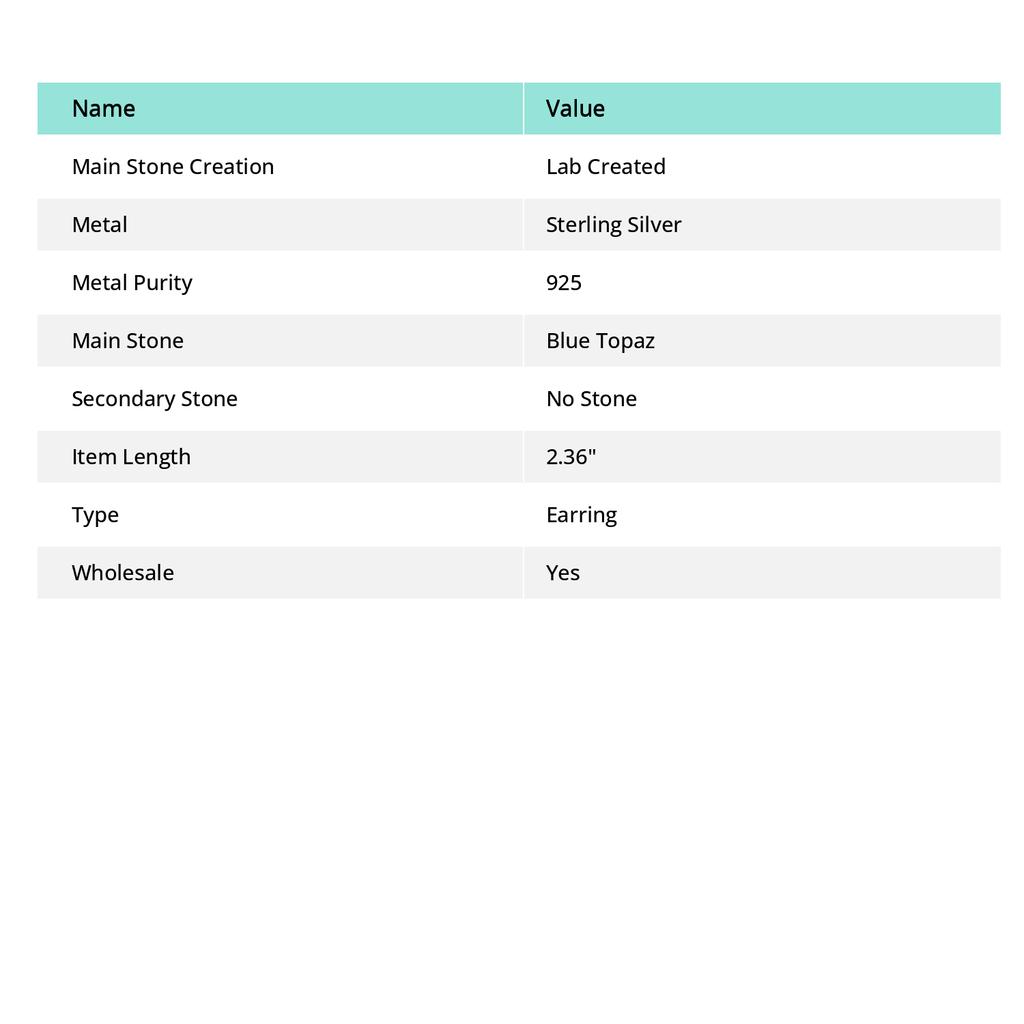Голубой Топаз Ручной Работы Ювелирное Изделие из Стерлингового Серебра 925 Серьга 2,36" p3g68