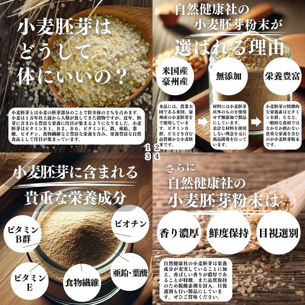 [О зародышах пшеницы] Зародыши пшеницы — это буквально зародыш пшеницы, и они содержат всего около 2% зерна.. Он богат питательными веществами, такими как витамины B1, B2, B6, витамин E, железо, цинк, фолиевая кислота, биотин и пищевые волокна.. Поскольку он содержит эти питательные вещества, он привлекает внимание как добавка, а его вкус также увеличивает его популярность.. В последнее время порошок из зародышей пшеницы используется в качестве ингредиента в кондитерских изделиях и хлебопечении, а также все чаще добавляется в ингредиенты для блинов, оладий и парового хлеба.. [О продукте] Этот продукт производится путем удаления только зародышей из пшеницы и превращения их в порошок.. Он становится все более популярным в качестве порошкообразной добавки, поскольку позволяет вам потреблять редкие питательные ингредиенты.. В качестве ингредиента для сладостей, таких как кексы, печенье, булочки и торты.. Вы также можете добавлять его в пасту, суп мисо, суп, карри, рагу, салат, окару, окономияки или посыпать им хлопья из хлопьев или бурого риса.. При добавлении в тесто для хлеба оно становится ароматным, сытным и вкусным.. Поскольку он богат питательными веществами, его также можно использовать в качестве постного или диетического продукта.. [Как использовать] 8~ в день