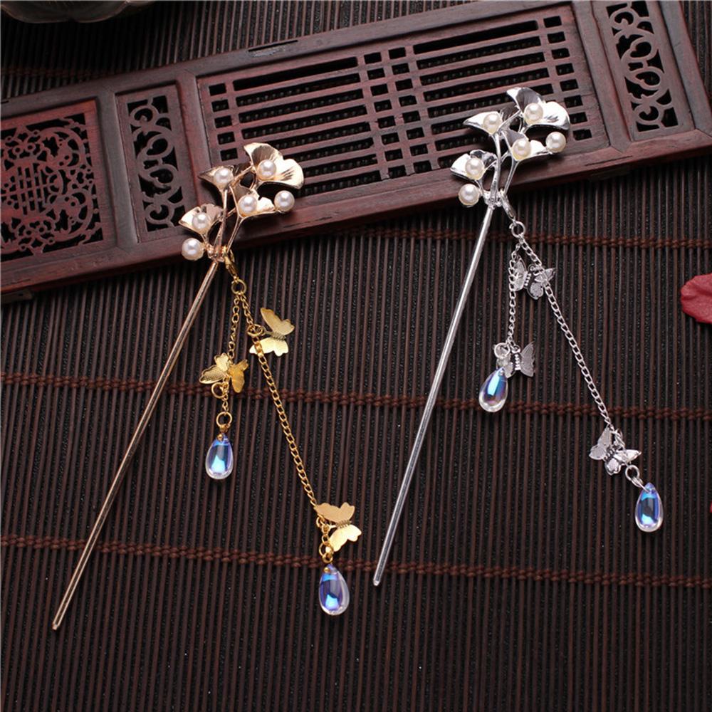 Chinese Classic Butterfly Tassel Hair Accessories Plate Hair Fork Tassel Hairpin Pearl Hair Sticks