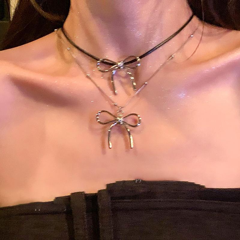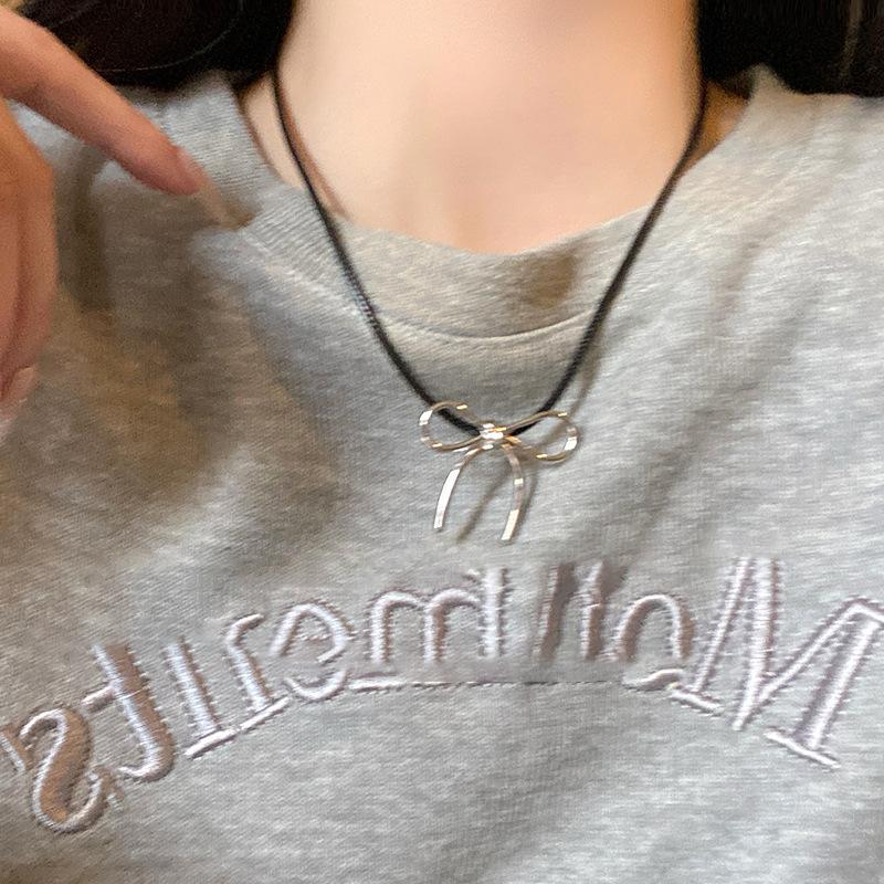 Ожерелье из кожи с бантом, женские нишевые винтажные аксессуары для темперамента, сладкая прохладная пряная цепочка на ключицу, персонализированные аксессуары премиум-класса