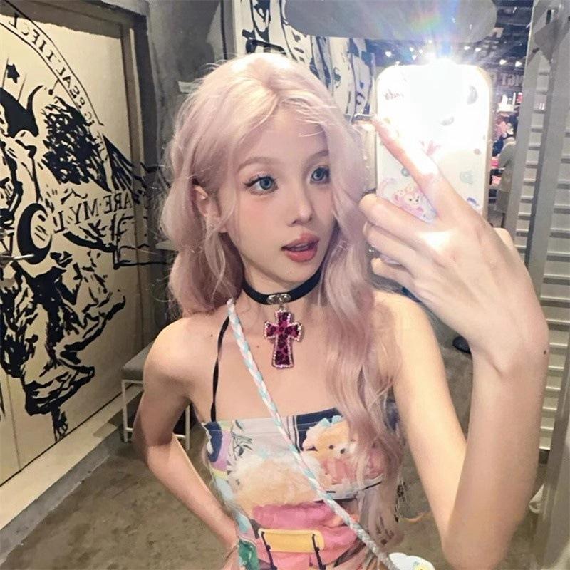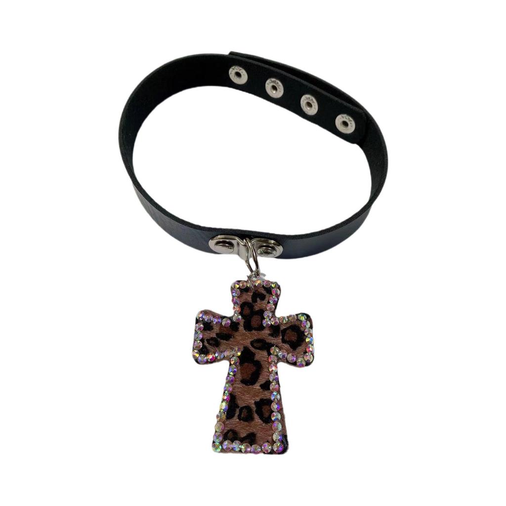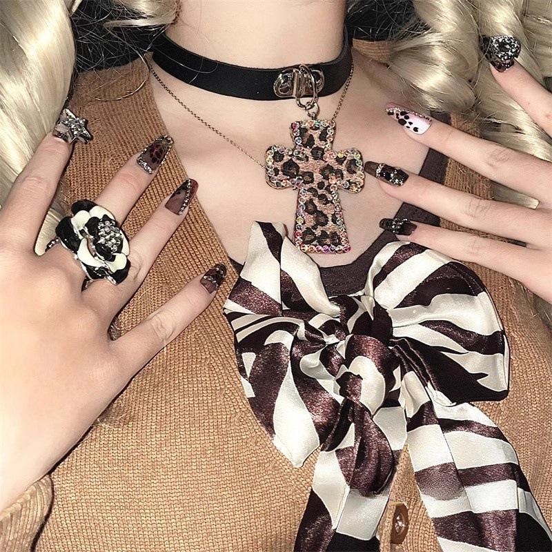 Y2K Millennial Babes Леопардовый принт Крест-чокер Ошейник Ниша Японский Фэн-шуй Бриллиантовое Ожерелье Цепочка Ключицы