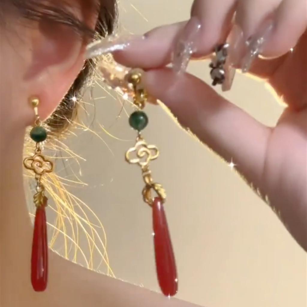 Новые китайские старинные серьги-капли в виде благоприятных облаков в стиле «красный тост» в национальном стиле с крючками для ушей в стиле ретро-чеонгсам премиум-класса