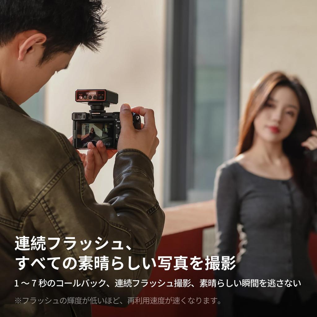 [Надежный]: Высокоскоростная вспышка, которая сделает ваши фотографии яркими даже в темноте. Эта вспышка имеет ведущее число 12, длительность вспышки 1/250 секунды и цветовую температуру 5600K.. (*Мы рекомендуем использовать эту вспышку на расстоянии до 4 м.) Возможна непрерывная фотосъемка со вспышкой со временем перезарядки 1–7 с.. Чем ниже яркость вспышки, тем быстрее она перезаряжается, прежде чем вернуться к полной мощности.