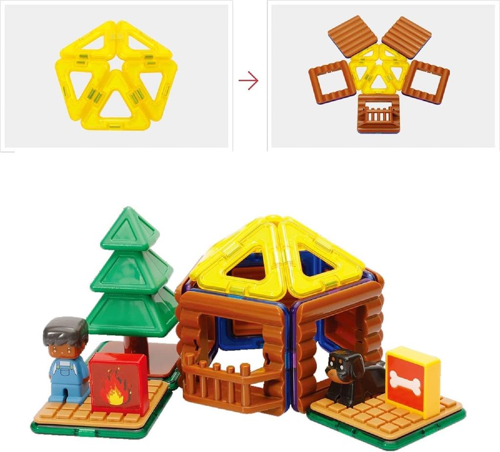 BorneLund MAGFORMERS Бревенчатый домик для детей от 3 лет и старше, развивающая игрушка, магнитный блок MF705016 [40 предметов]
