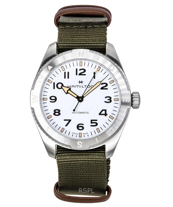 Hamilton Khaki Field Expedition текстильный ремешок белый циферблат автоматические часы H70315910 100M унисекс — купить товар онлайн с бесплатной доставкой по всему миру!