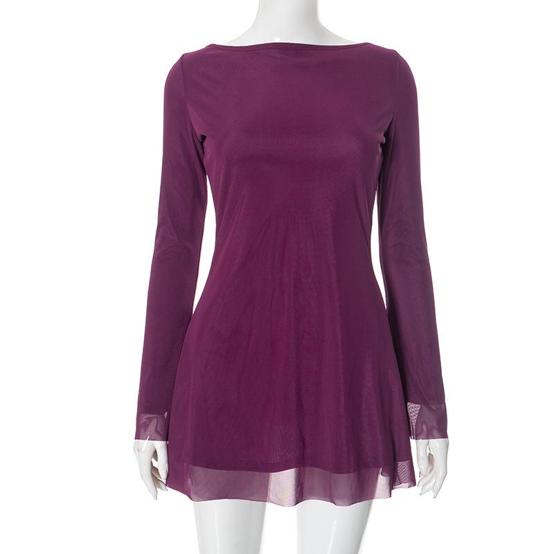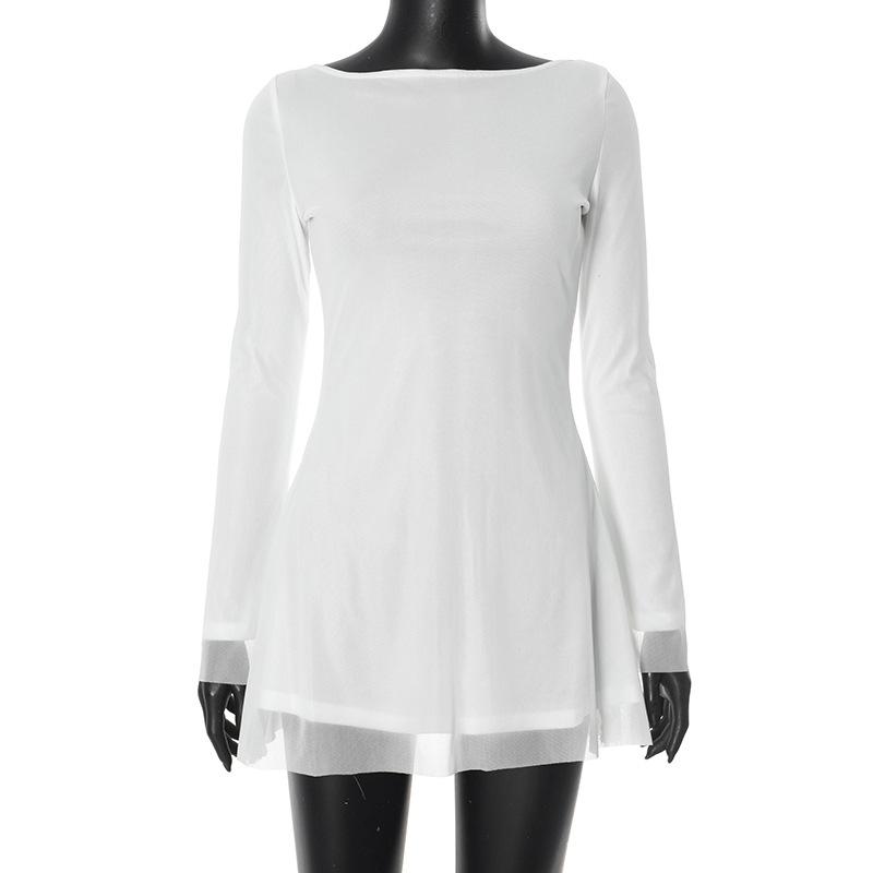YYFS Женская мода весна осень однотонный принт с длинным рукавом и круглым вырезом с высокой талией повседневные платья