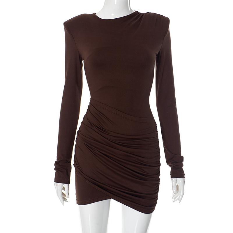 YYFS Женская мода весна осень однотонный принт с длинным рукавом и круглым вырезом с высокой талией повседневные платья