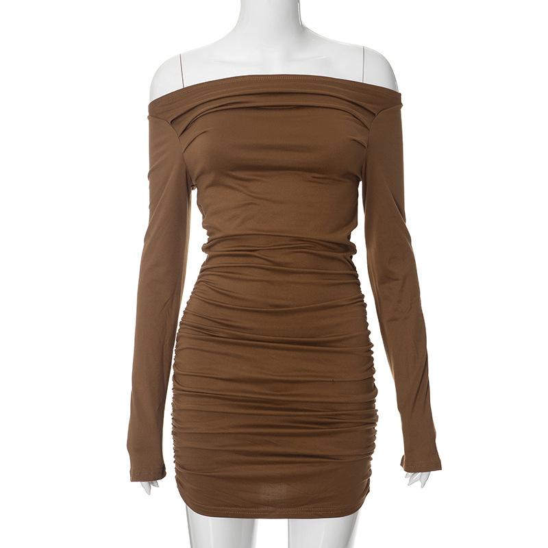 YYFS Женская мода весна осень однотонный принт с длинным рукавом на одно плечо и высокой талией повседневные платья