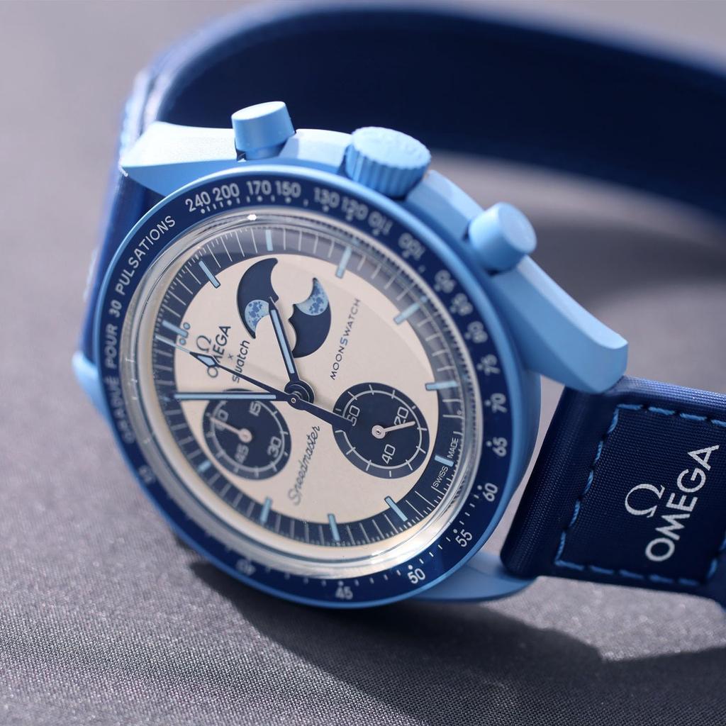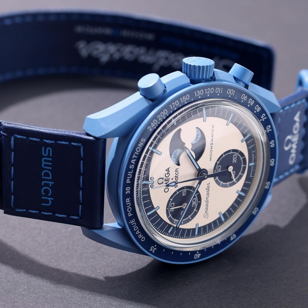 Название модели: Номер модели «Миссия на супер-голубую фазу Луны»: SO33N700 Диаметр: Толщина 42 мм: 13,75 мм от выступа до выступа: 47,3 мм Материал корпуса: Синий биокерамический циферблат: Синий и серебристый опаловый светящийся: Да, Super-LumiNova на индексах, часовой, минутной и секундной стрелках хронографа