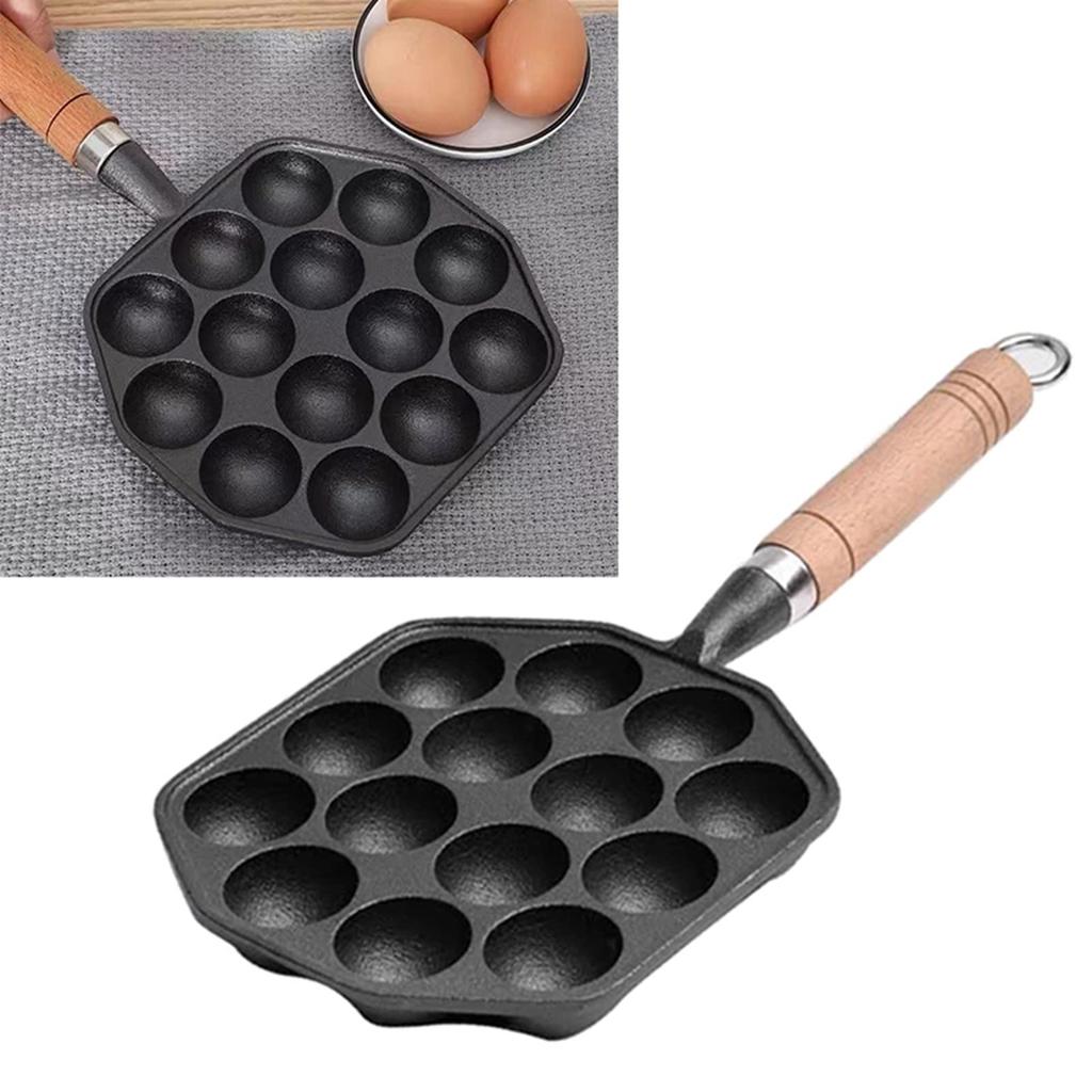 4. 14 пресс-форм: Чугунная сковорода-гриль для такояки имеет 14 отверстий, что позволяет приготовить 16 формочек для такояки одновременно.. Он быстро нагревается и позволяет эффективно готовить такояки.