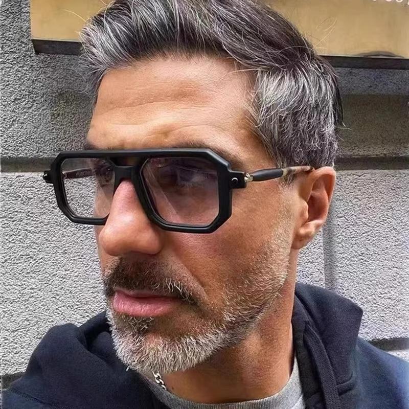 Винтажные квадратные солнцезащитные очки для мужчин, мода 2025 года, ретро-очки с двойной перемычкой, мужские солнцезащитные очки, модные фирменные дизайнерские оттенки