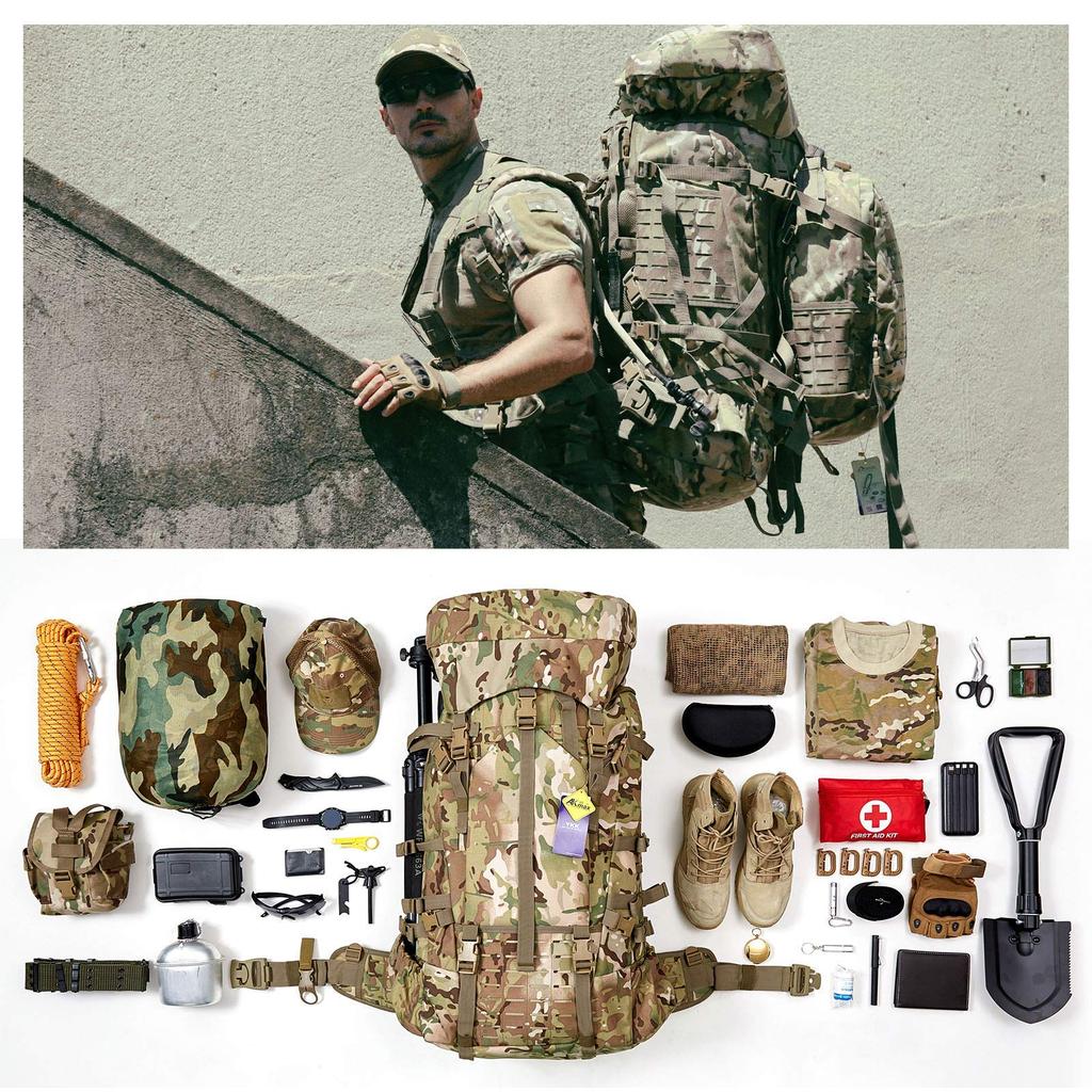 [Большая вместимость и удобство хранения] В комплект входит один штурмовой подсумок емкостью 22 л.. Доступ к основному полевому рюкзаку осуществляется через две пряжки.. Объем основного заднего отсека составляет 4500 кубических дюймов, а его вместимость — 60 л, что в сумме составляет 80 л.. В центральном отделении достаточно места для гамаков, камер и т. д., а также имеются вырезанные лазером стропы MOLLE PALS, позволяющие прикреплять различные нестандартные предметы для обслуживания, полностью используя пространство для хранения и находя нужные вещи.. Это также будет удобно.