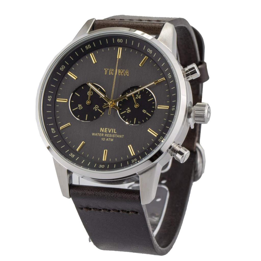 Часы-хронограф унисекс Neville Chronograph темно-коричневого цвета из кожи угольно-серого цвета TRIWA [TRIWA] Мужские женские NEST114-CL010412 [Товар] — купить товар онлайн с бесплатной доставкой до всему миру!