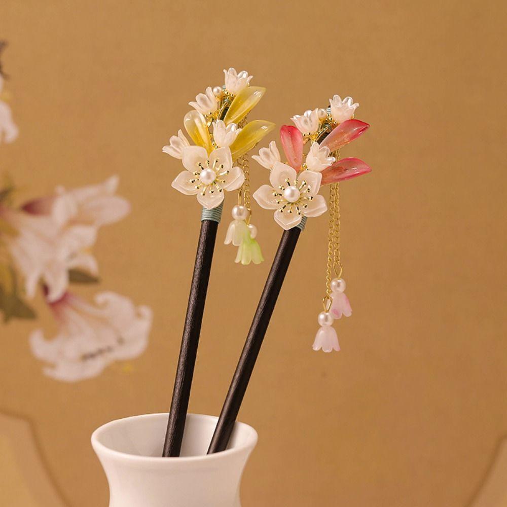 Handmade Flower Hair Sticks Ethnic Chinese Style Hair Chopsticks Winding Hairpin for Disk Hair