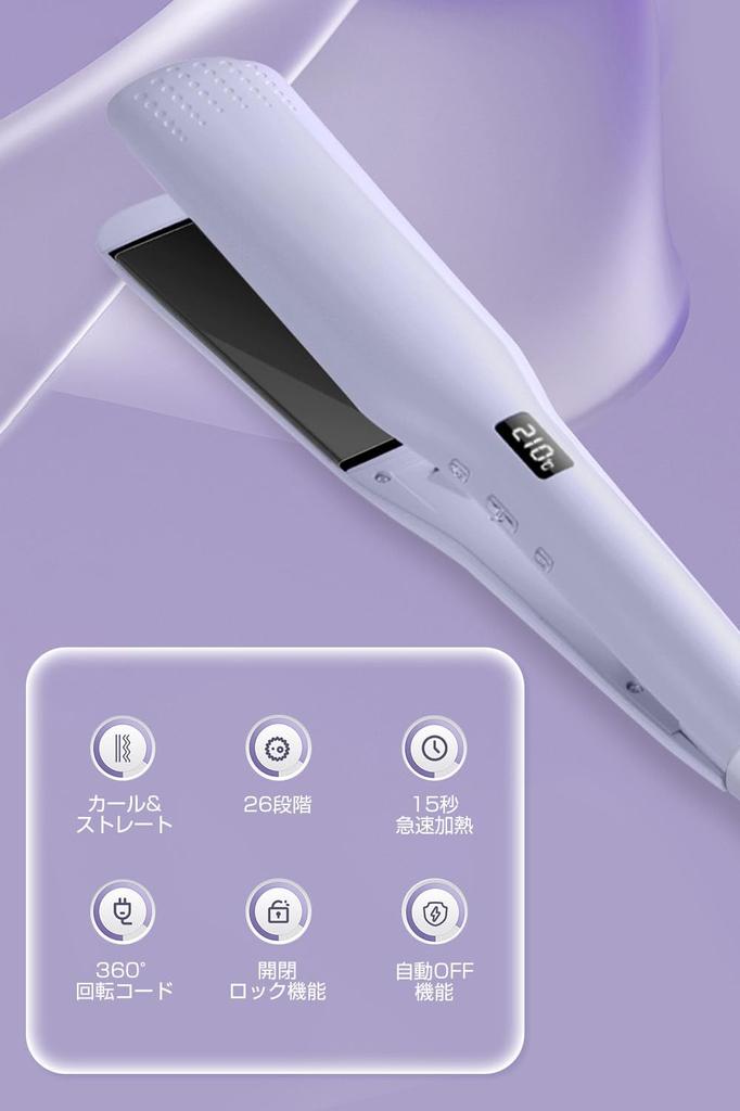 26-ступенчатая регулировка температуры и ЖК-дисплей температуры: Регулируется по 26 ступеням от 80°C до 210°C с шагом 5°C в зависимости от типа волос и степени их повреждения (мягкие, тонкие, поврежденные, жесткие, густые и т. д.). Можно использовать для разных типов волос.. Рекомендуется тем, кто хочет бережно относиться к своим волосам.. Температура отображается на ЖК-мониторе, входящем в комплект поставки, и ее можно проверить одним взглядом.. (Если вы не знаете свой тип волос, попробуйте постепенно, начиная с самой низкой температуры при первом использовании.)