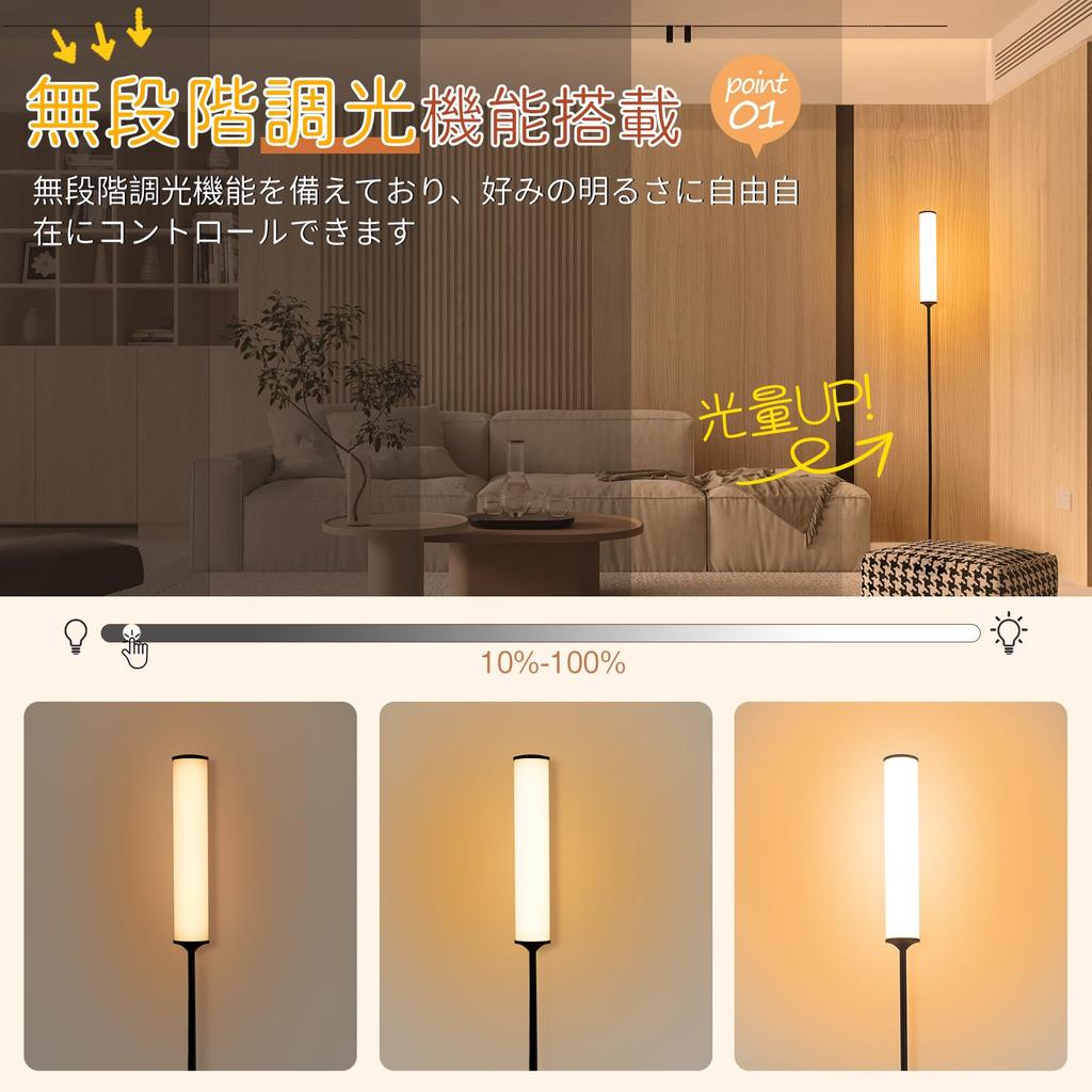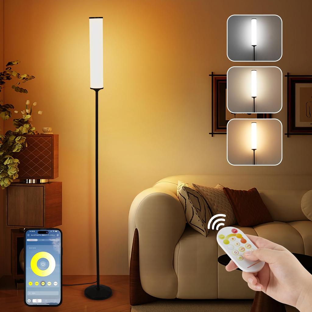 [Создайте стильное пространство с помощью плавной регулировки яркости и регулировки цвета] Благодаря функциям плавной регулировки яркости и регулировки цвета вы можете свободно регулировать цветовую температуру от цвета лампочки до цвета дневного света.. Яркость можно плавно регулировать от 10% до 100%, что делает этот напольный светильник идеальным источником света для любого случая.
