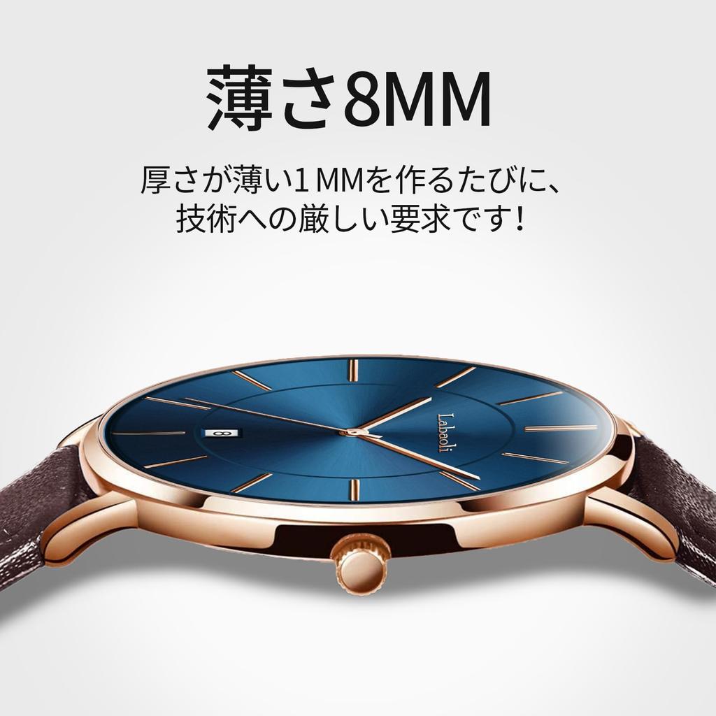 Простые модные повседневные деловые часы с японским кварцевым механизмом, циферблатом 40 мм, ремешок из натуральной кожи, ремешок унисекс, корпус из розового золота, синие мужские, ультратонкие, 6,5 мм