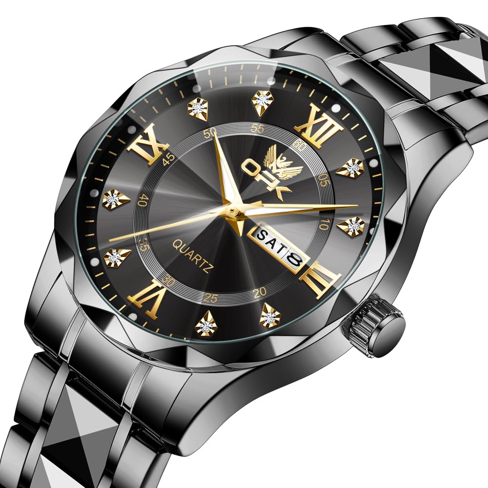 OPK кварцевые простые популярные часы стильные модные нержавеющая сталь водонепроницаемые классические наручные часы дата светящиеся старшеклассники компания подарок черный