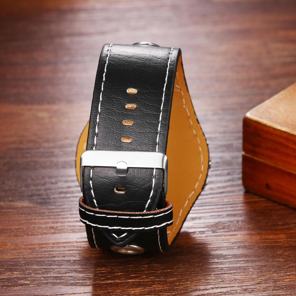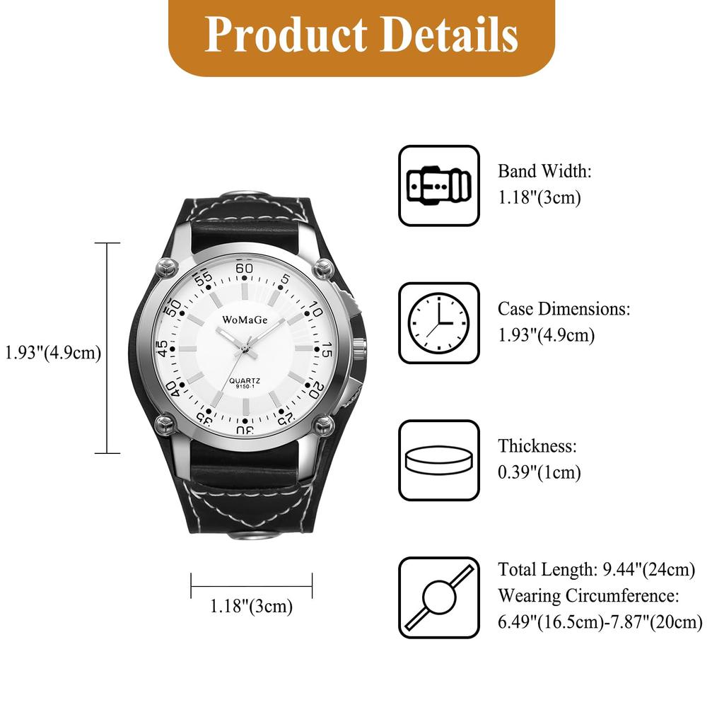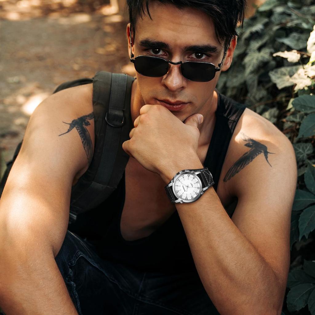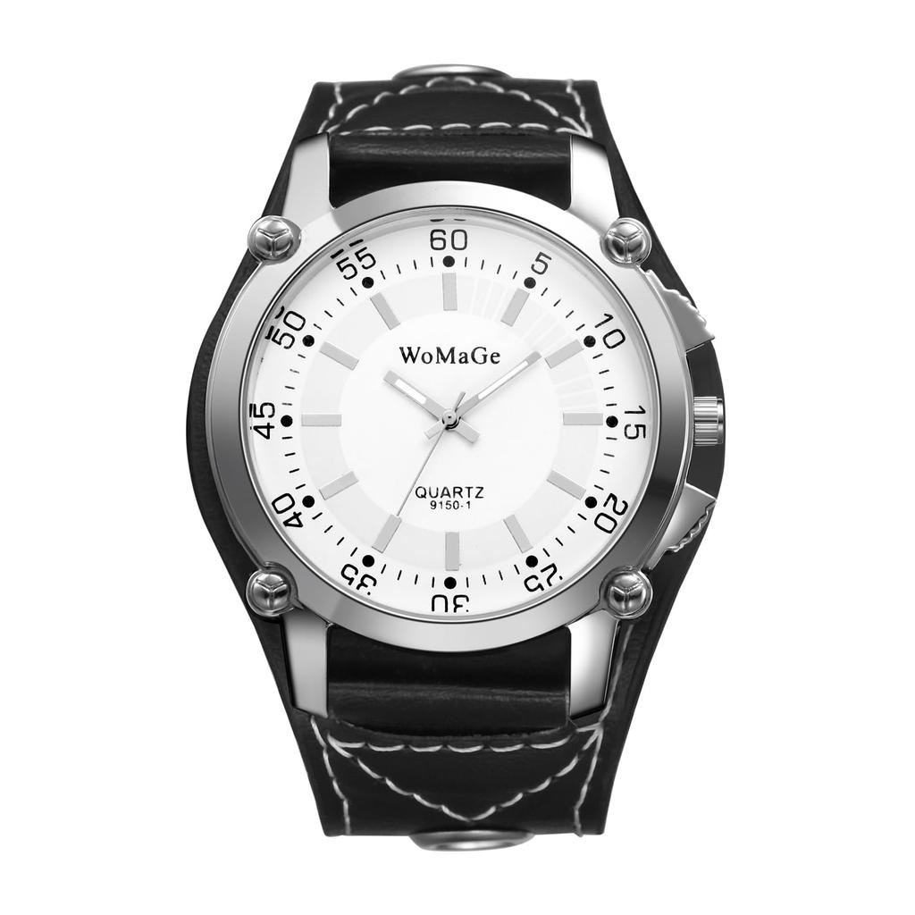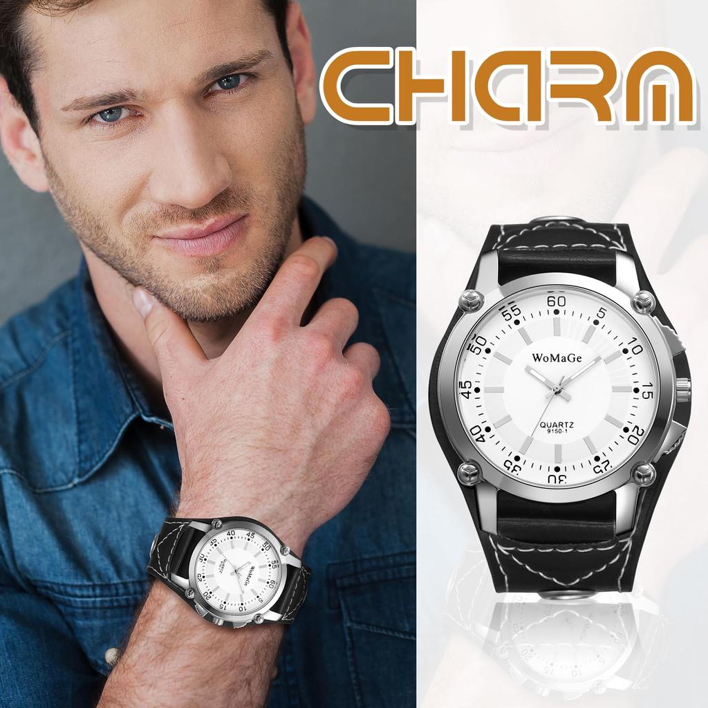 [Повседневные водонепроницаемые] [Аналоговые] [Кожаный ремень, широкий браслет, регулируемая длина] Простые и стильные повседневные деловые мужские наручные часы в стиле рок-панк.