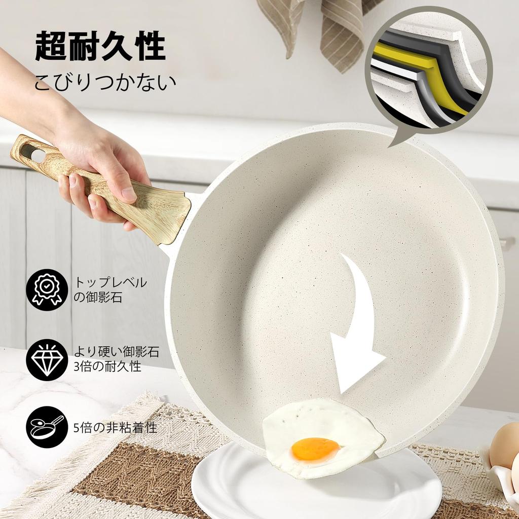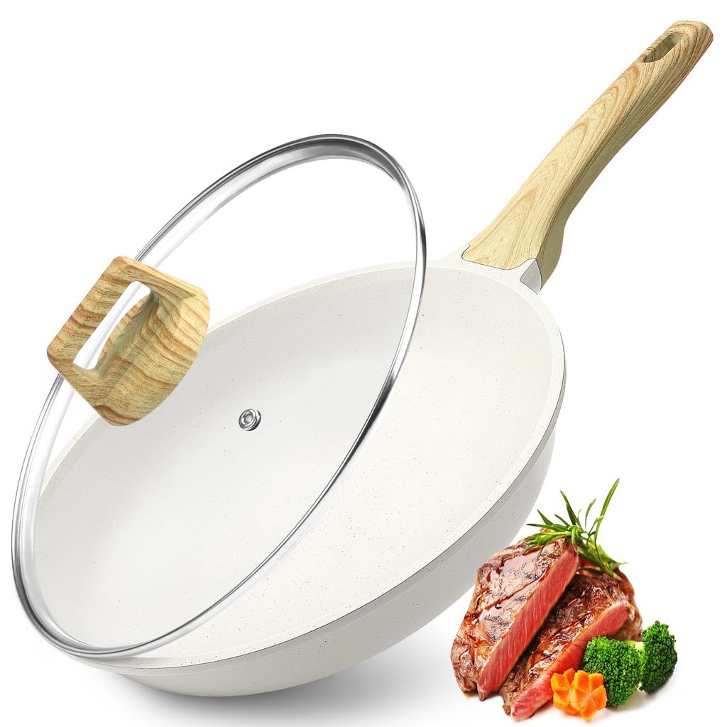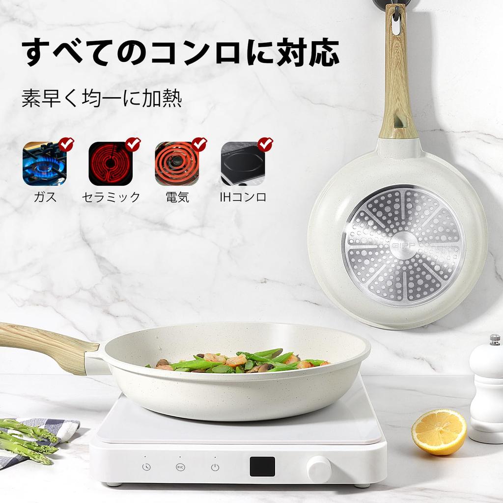 GiPP Сковорода 28 см с индукцией и газом Сковорода с мраморным покрытием Безвредная для Легкая для Высокая термическая ПФОА и ПФОС Белая крышка, Совместимая, Антипригарная