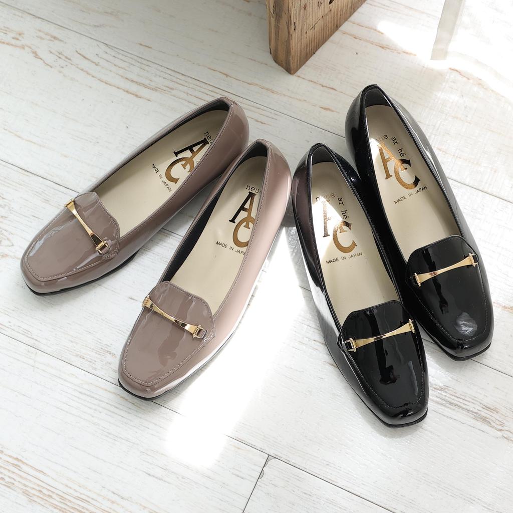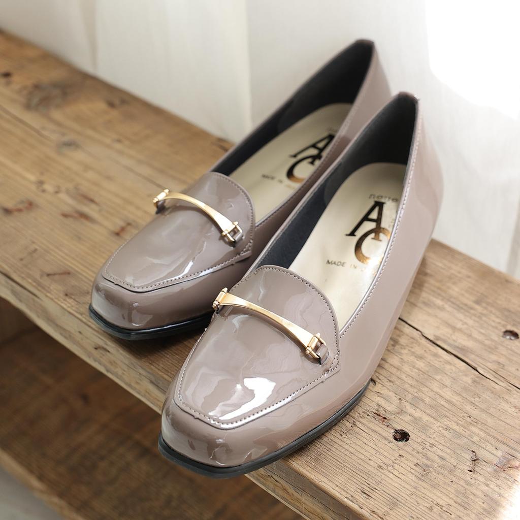 Neue ar he AC Made in Japan легкие широкие туфли-лодочки 3E с квадратным носком и золотистой эмалью на низкой танкетке [Demeter] женские 2831-L30 (Дуб,