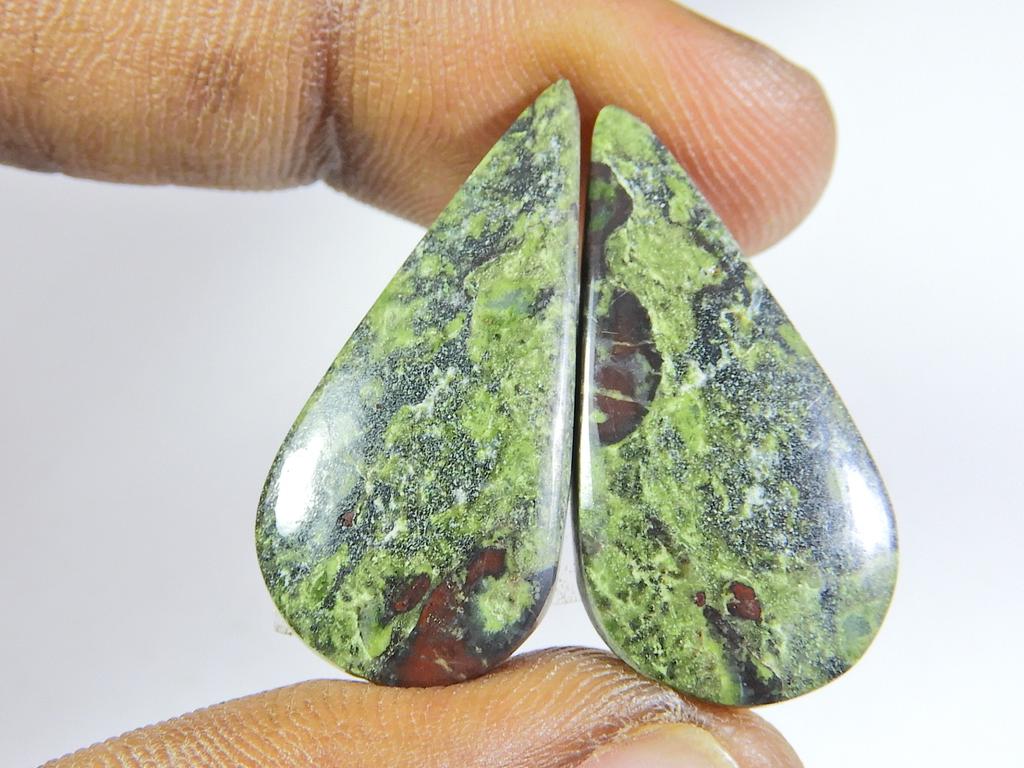 33Cts. НАТУРАЛЬНАЯ ДРАКОНЬЯ ЯШМА ПАРА ГРУШЕВЫХ КАБОШОНОВ, ДРАГОЦЕННЫЙ КАМЕНЬ 13X27X04 ММ SK-414